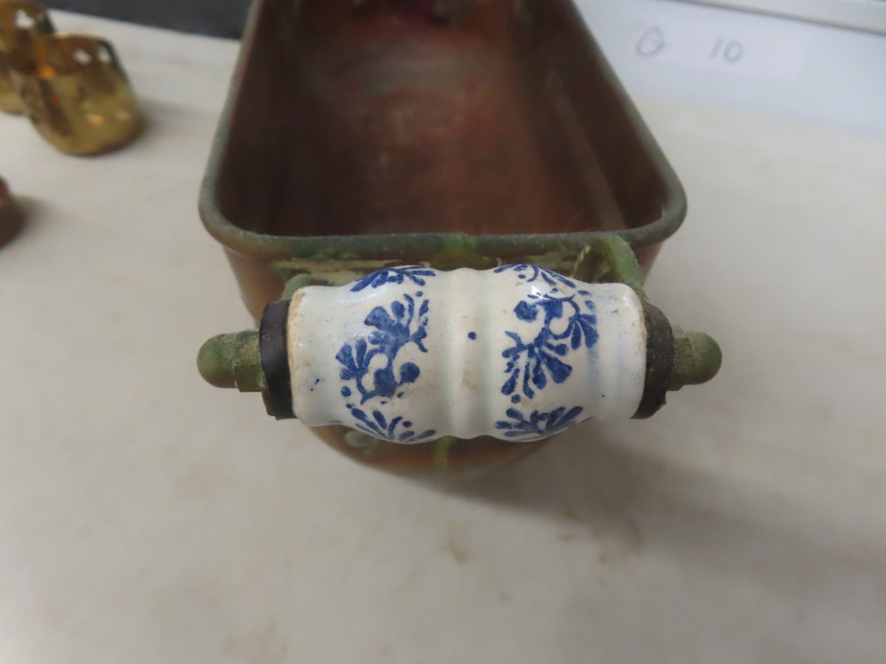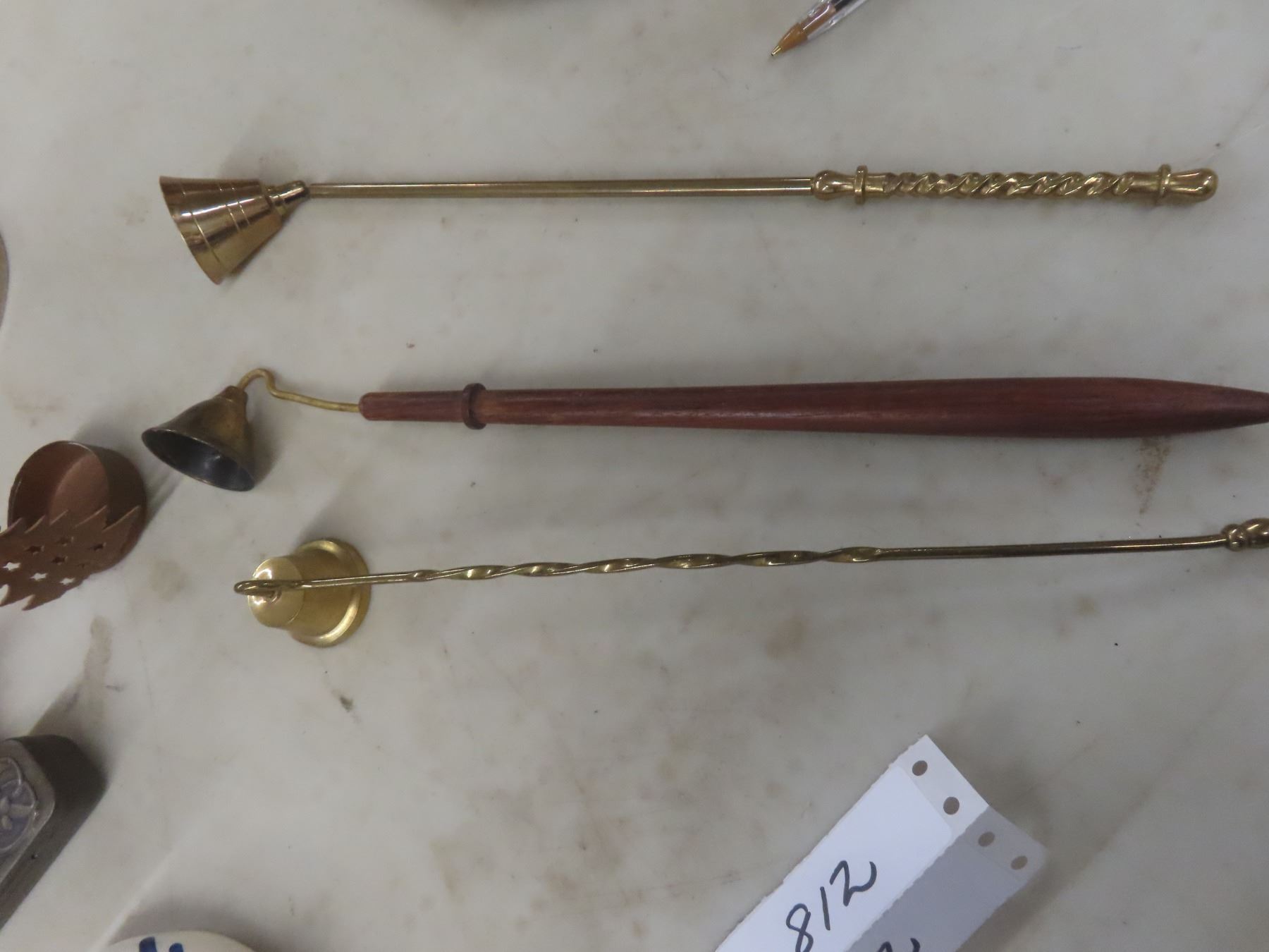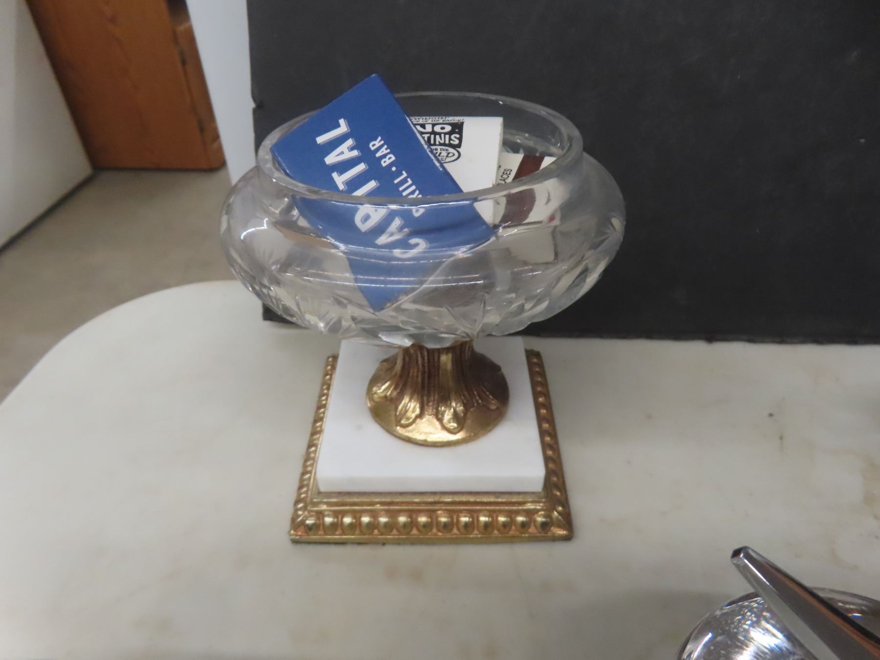 Lot 812 Miniature Copper Planter, Brass Candle Holders, Candlestick Holders, Crystal Ashtray