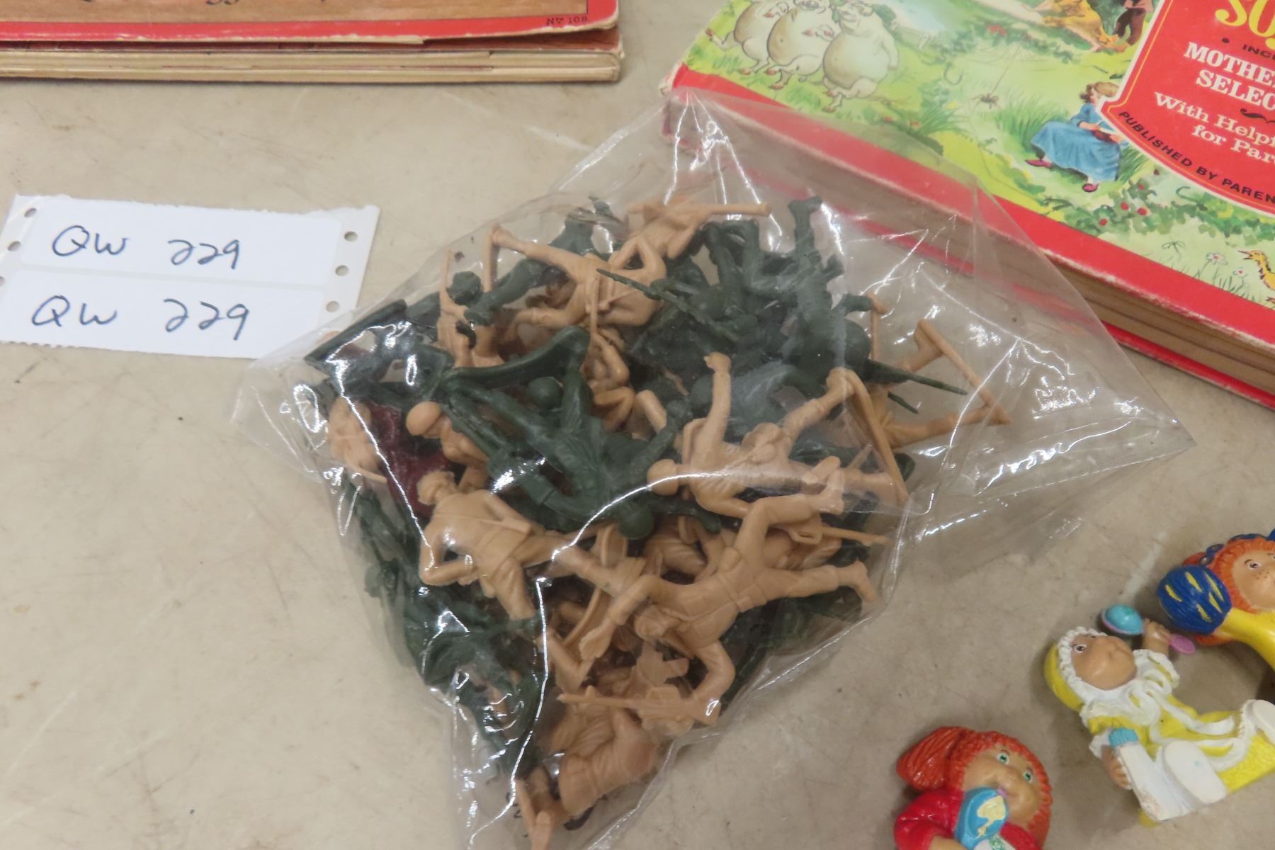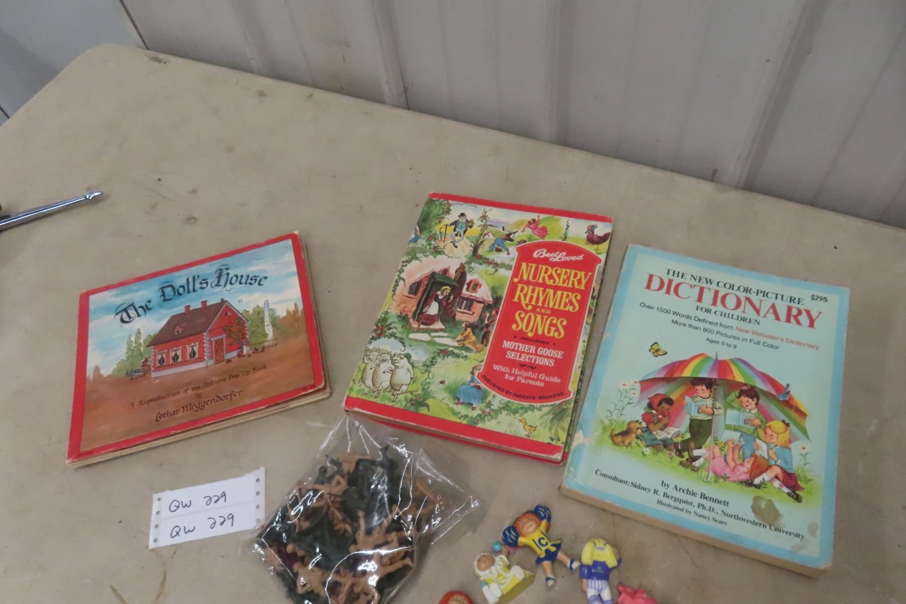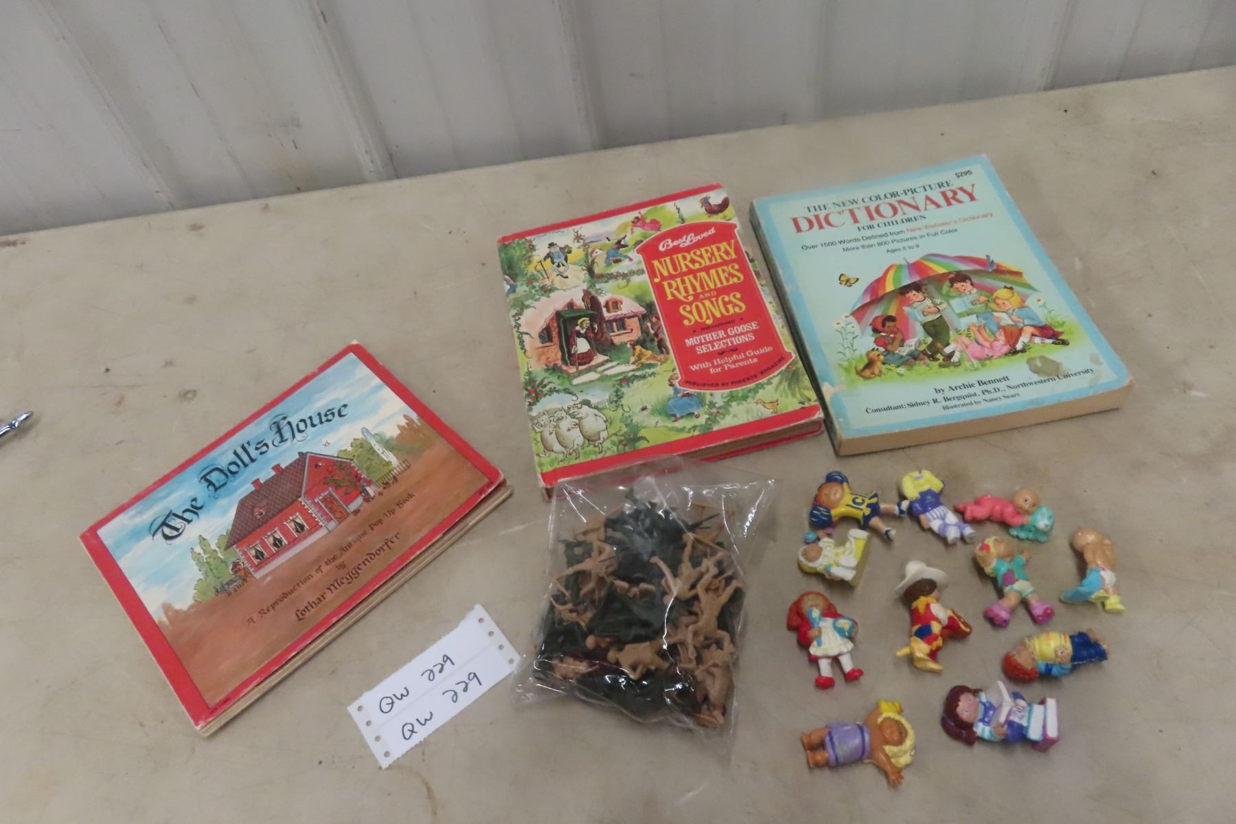 Lot 229 Toy Army Men, Cabbage Patch Figurines, and Children's Books