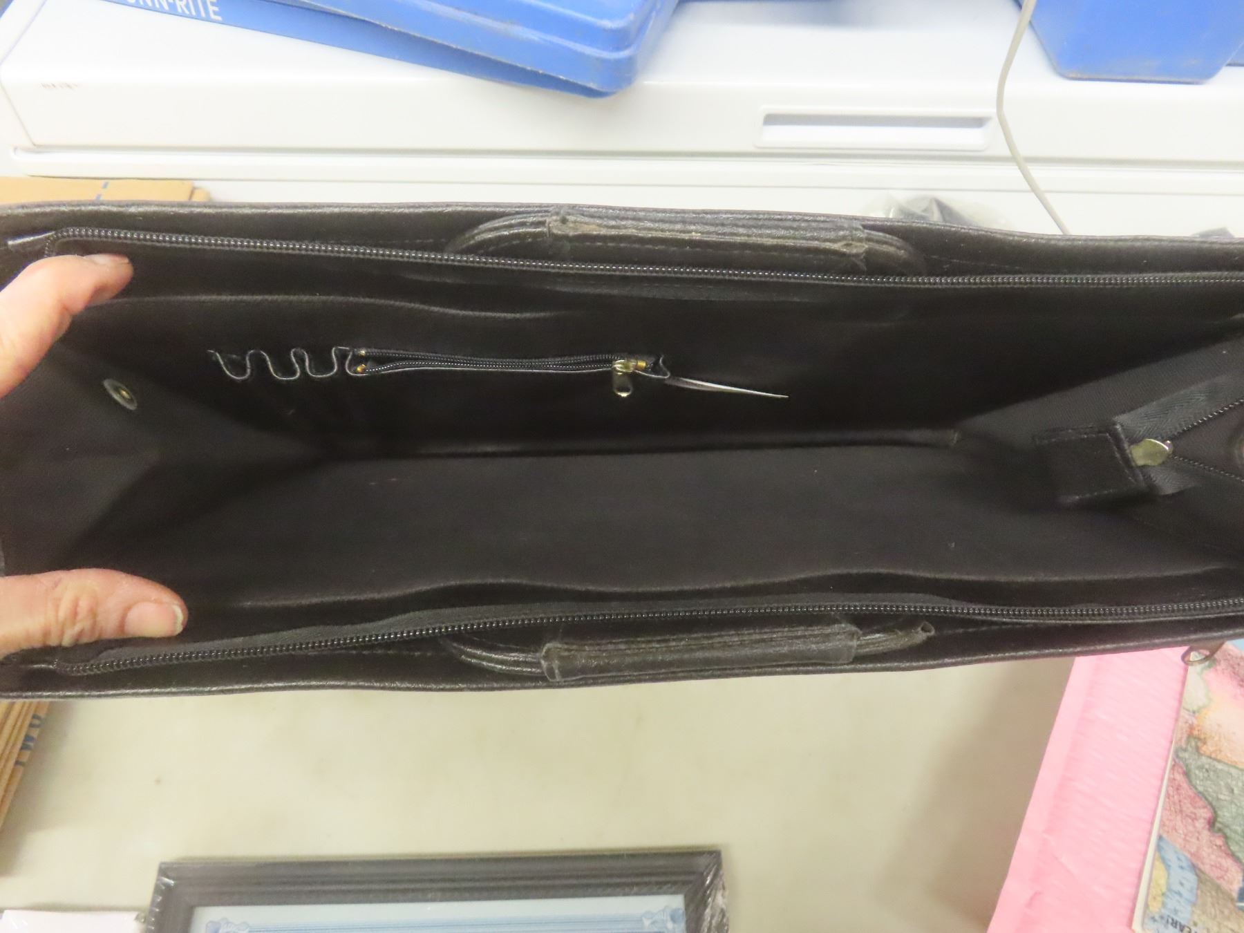 Lot 883 Document Frames, 1998 Crown Victoria Manual, 2 Platform Dollies, Briefcase, 5 New Leather Biker Hea