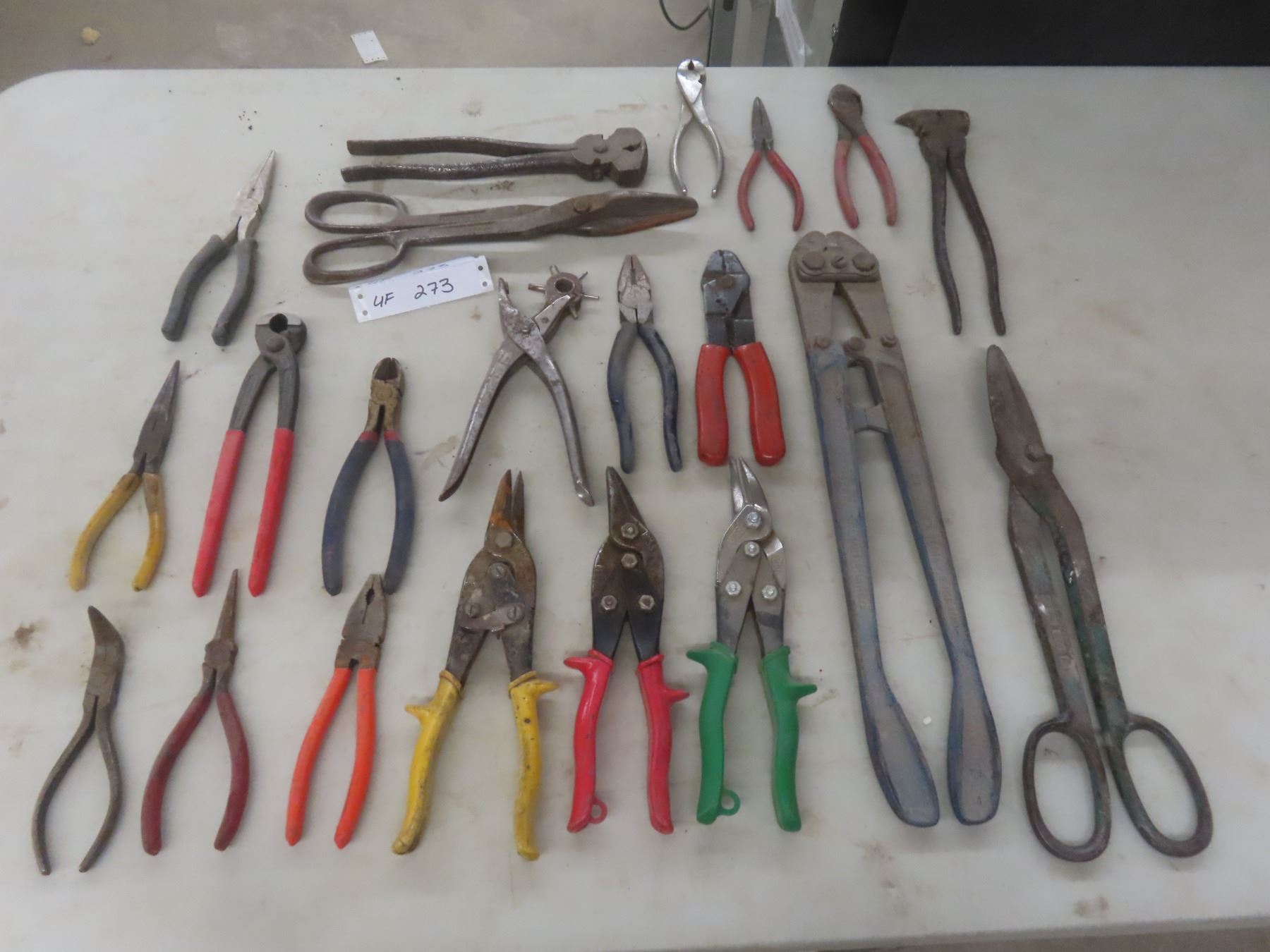 Lot 273 Hand Tools Lot: Snips, Pliers, Wire Cutters, Bolt Cutters, and More