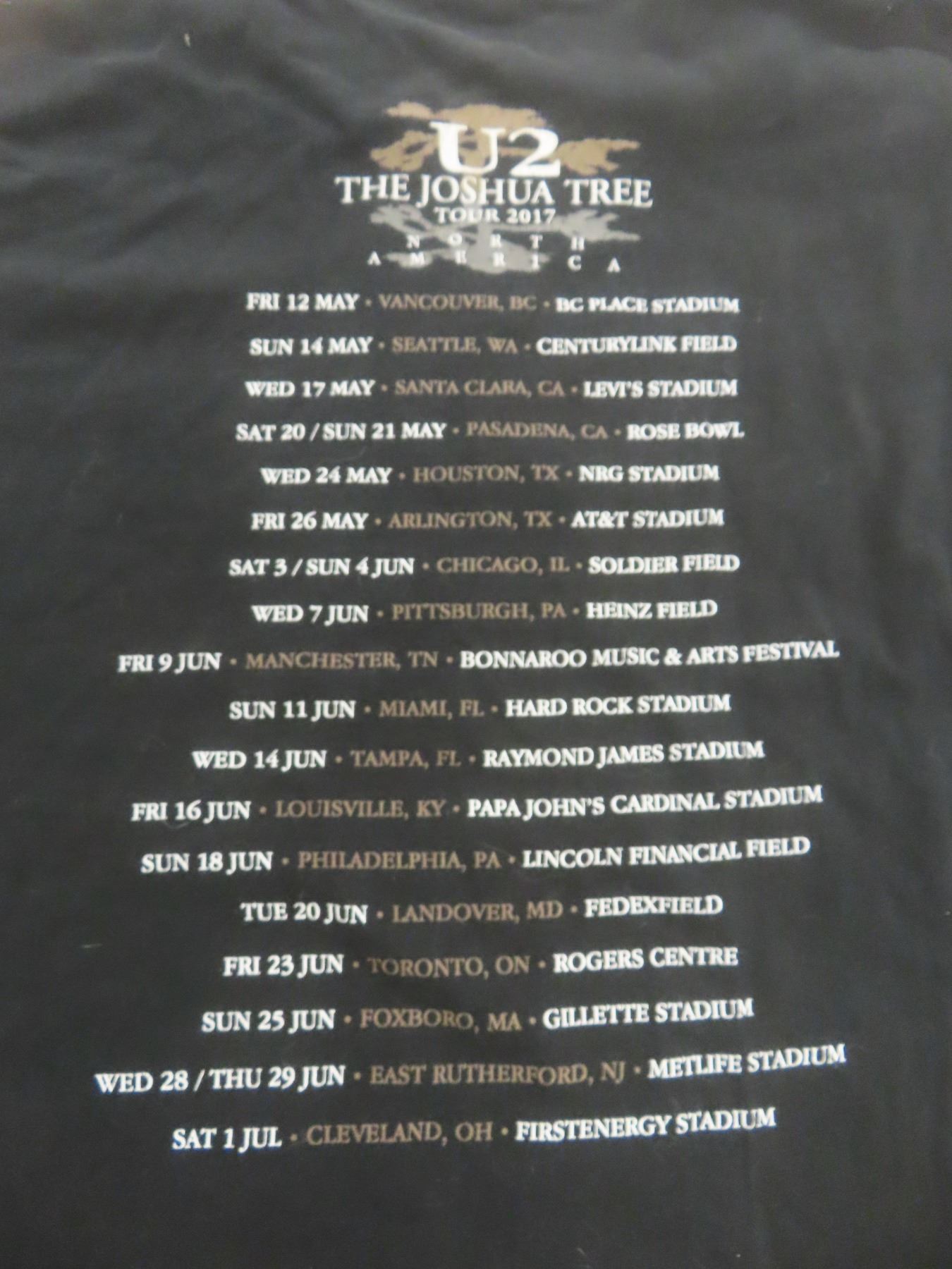 Lot 947 5 U2 Band T-Shirts, Sizes XL and 2XL, From 360 Tour, Joshua Tree Tour, and Songs of Innocence & Exp