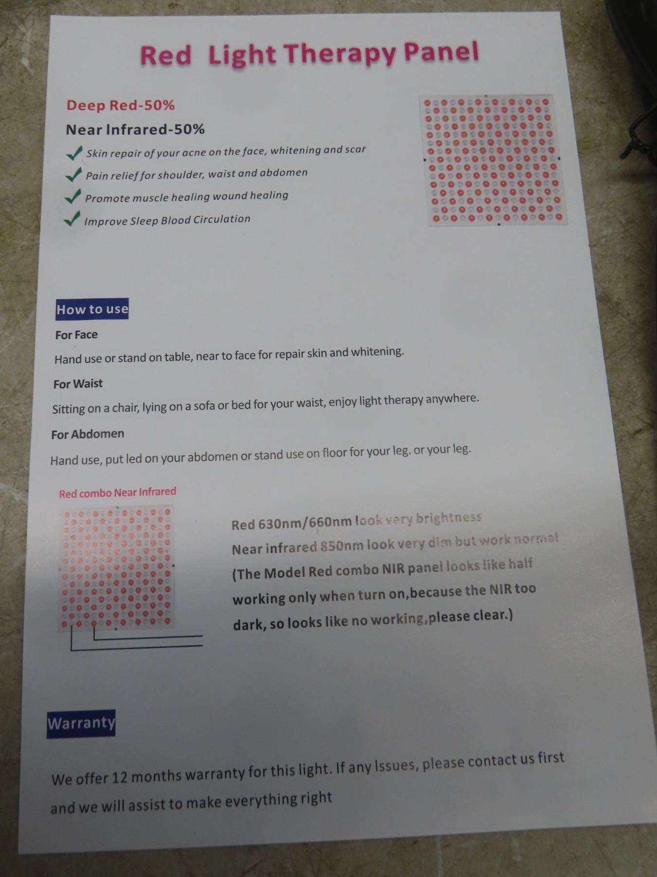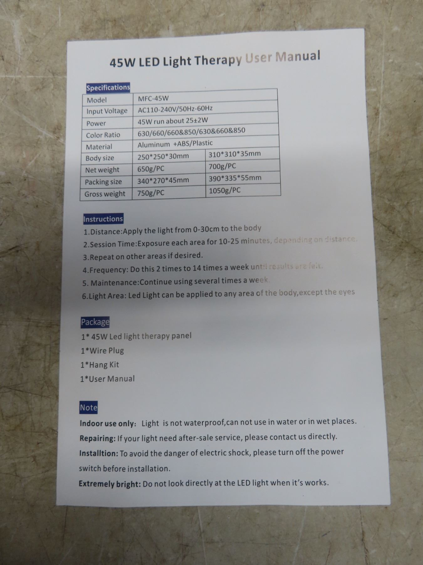 45W LED Light Therapy Panel, 10" (New or Store Return)