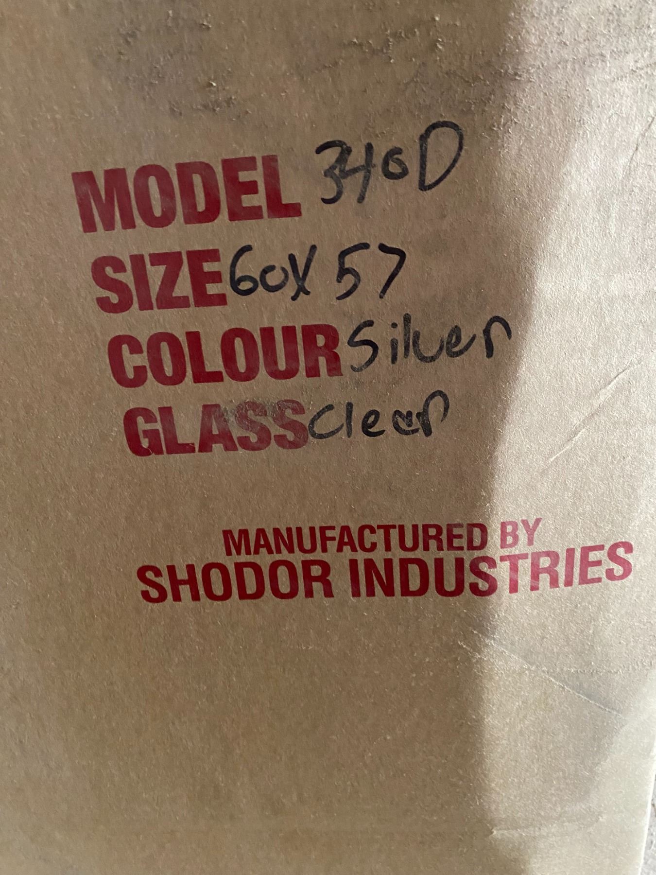Lot 594B Shodor Industries Shower Door Kit, Model 340D, Silver, 60" x 57"