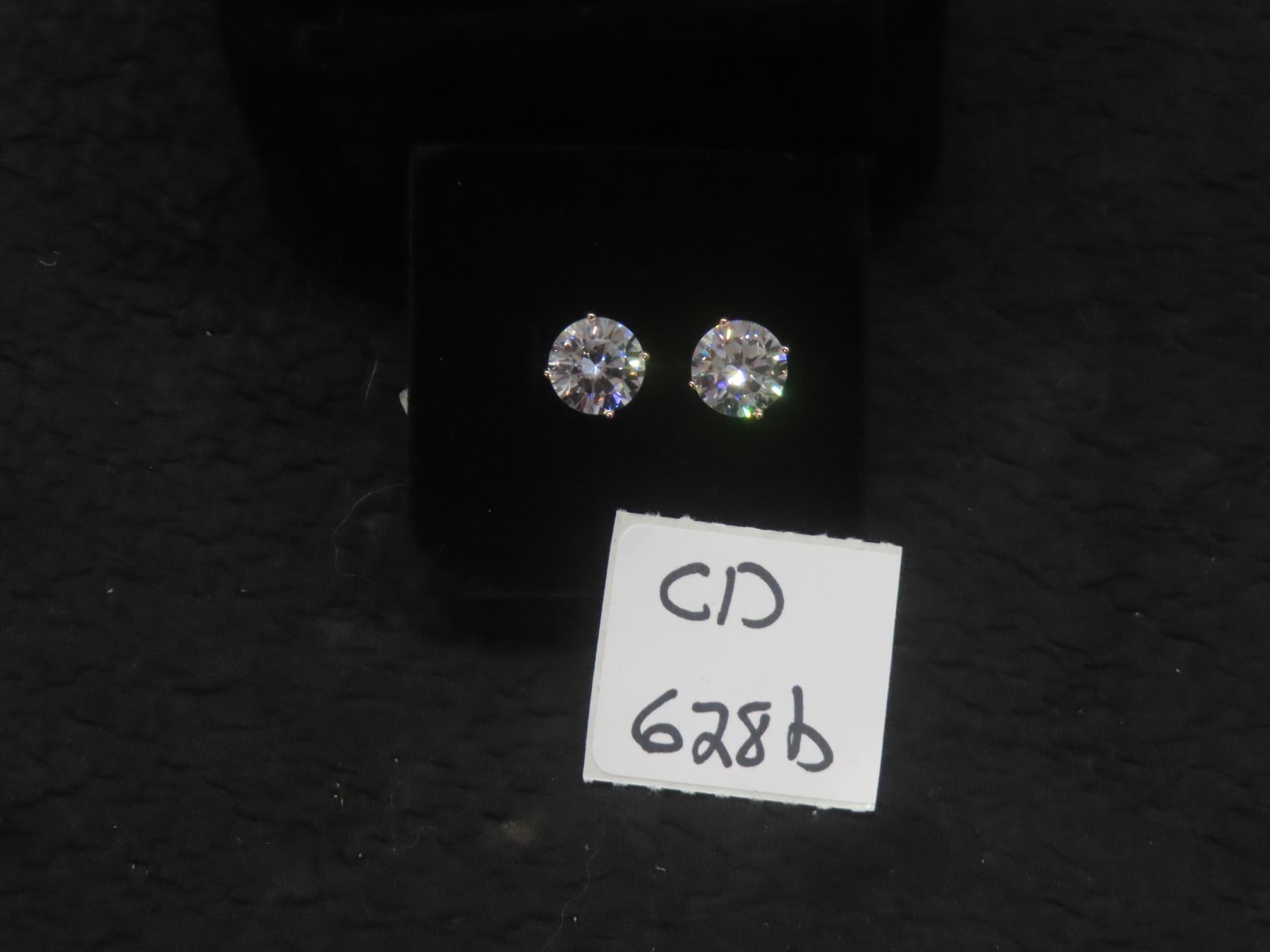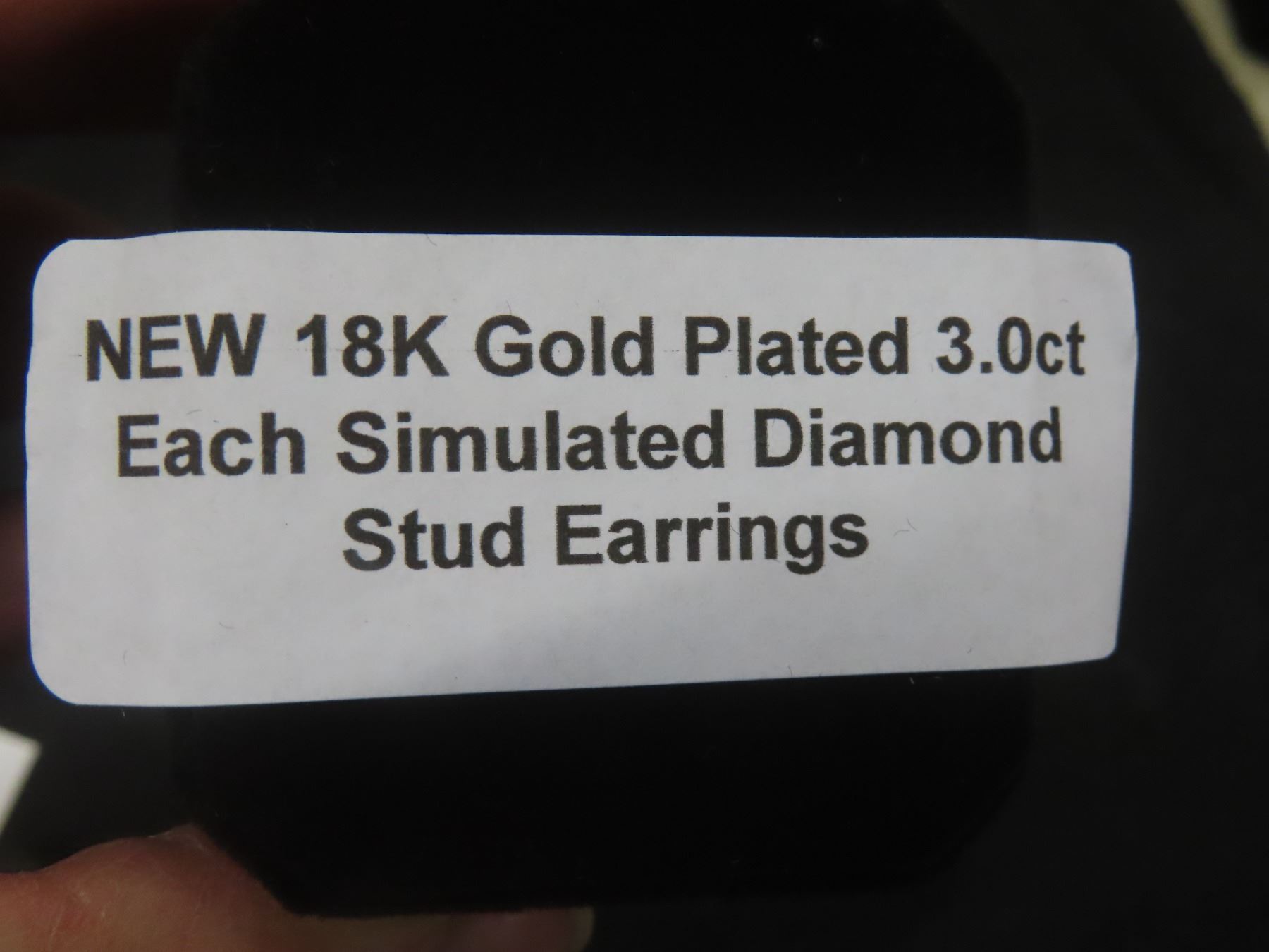 Lot 628B New 18K Gold-Plated 3.0 CT Each Simulated Diamond Stud Earrings