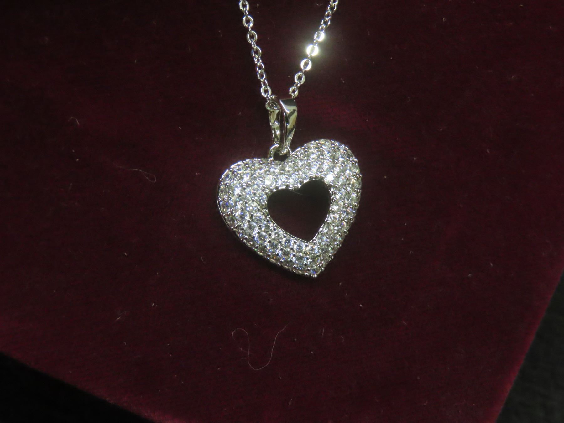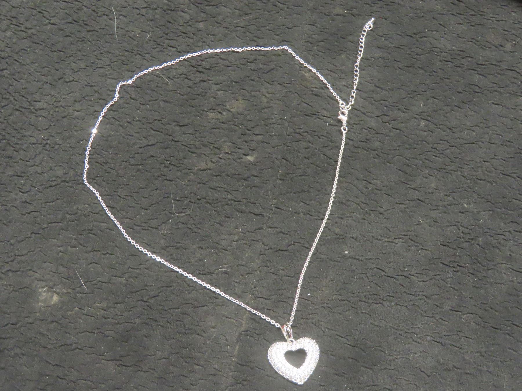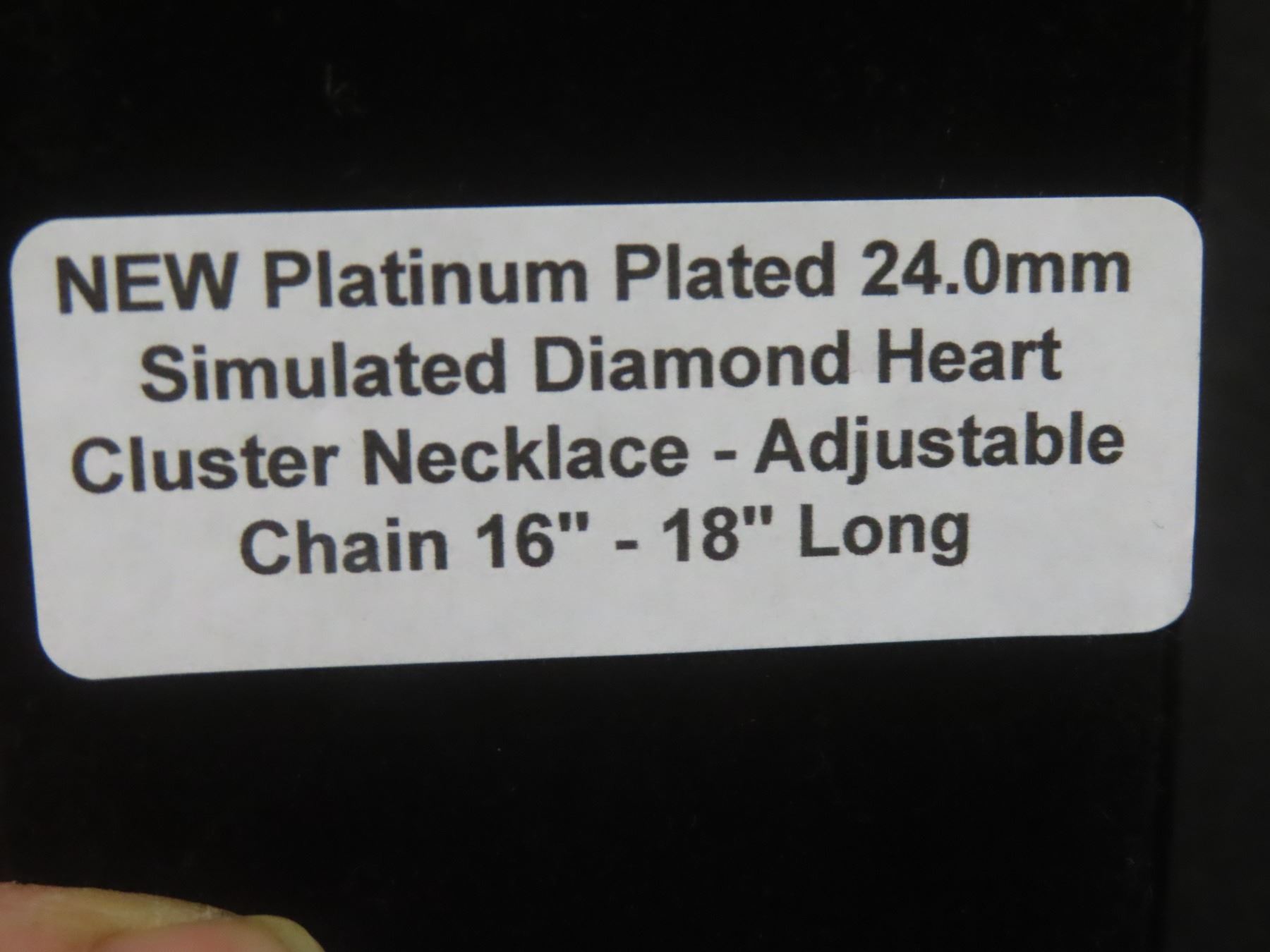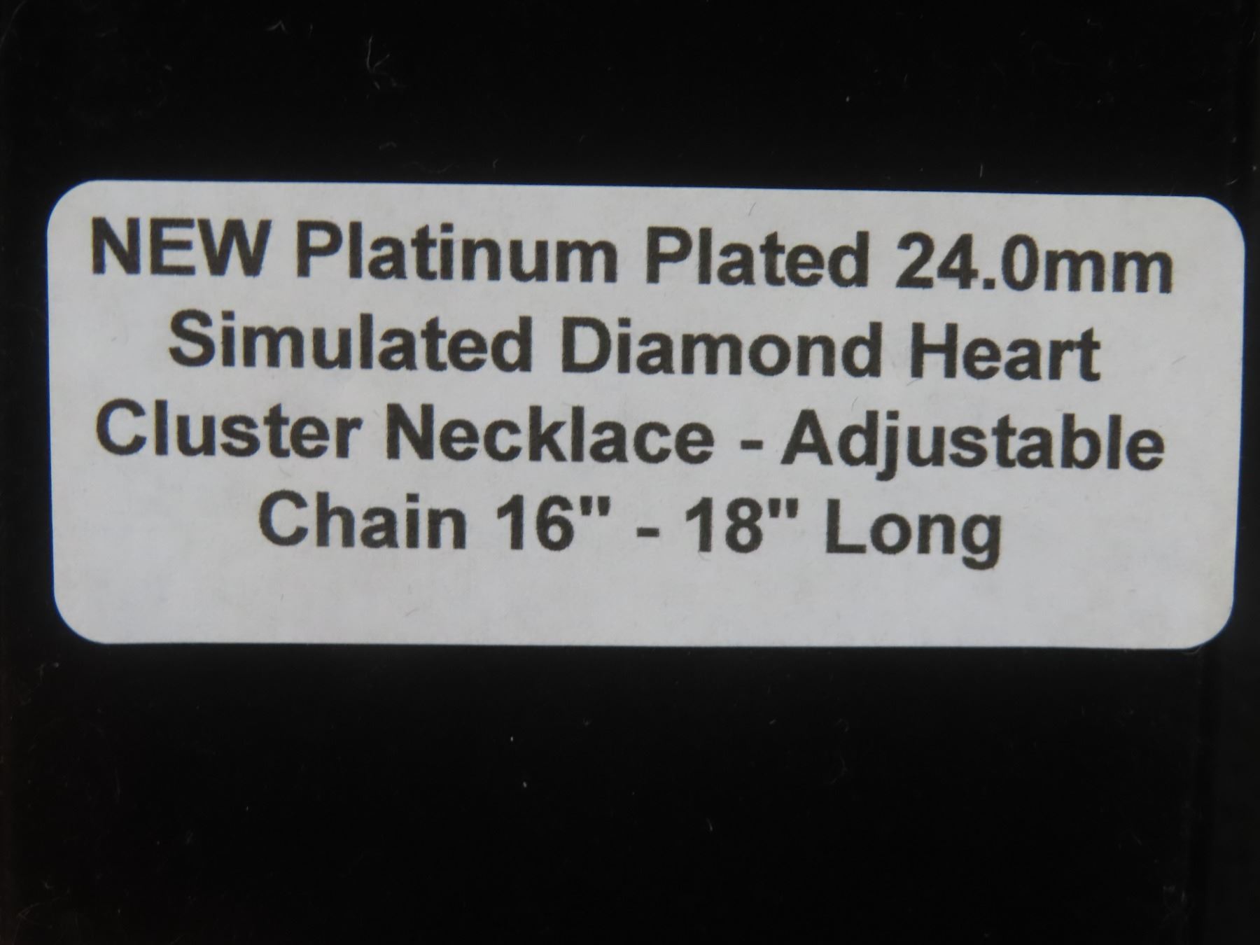Lot 629B New Platinum-Plated 24.0mm Simulated Diamond Heart Cluster Necklace, Adjustable Chain 16"–1