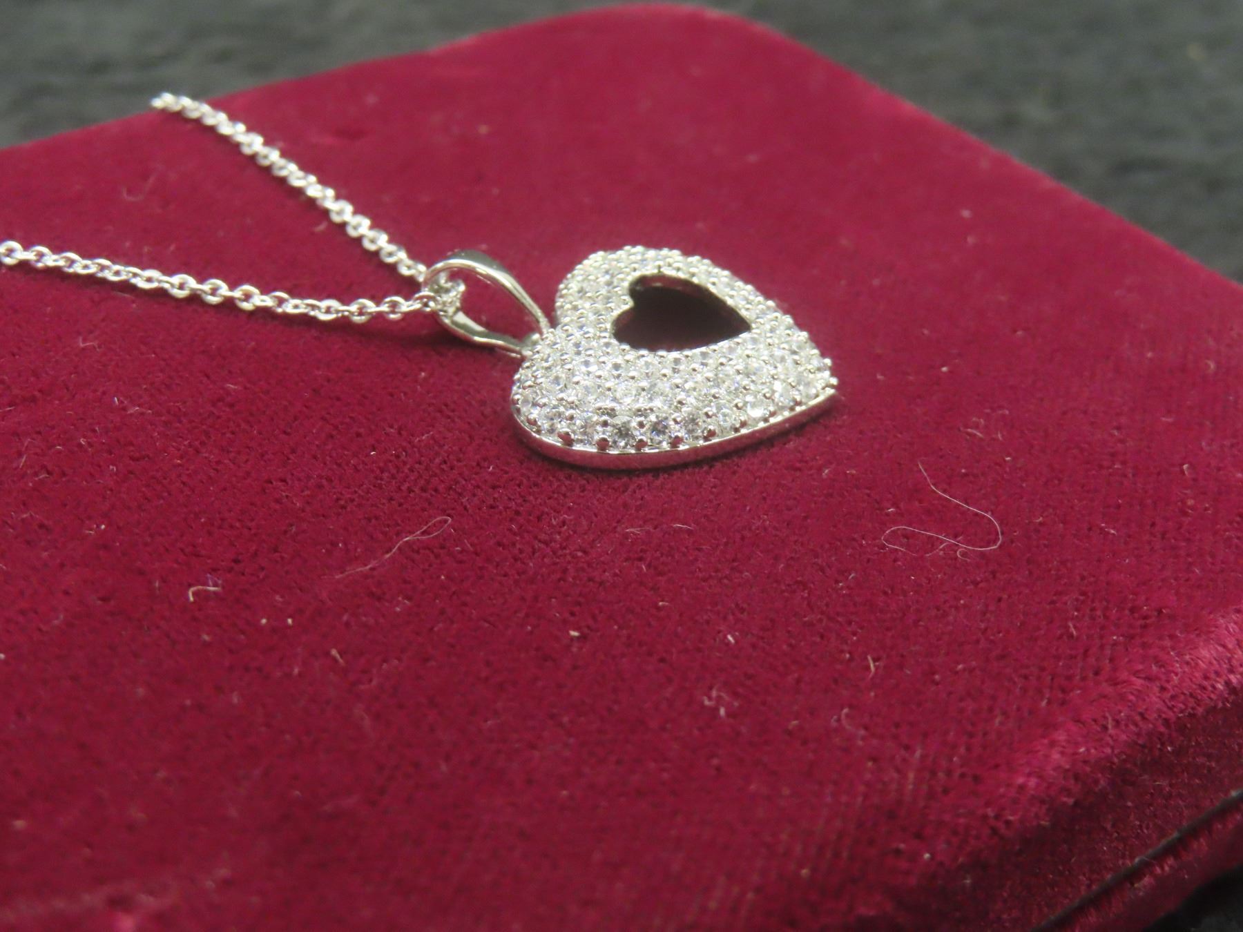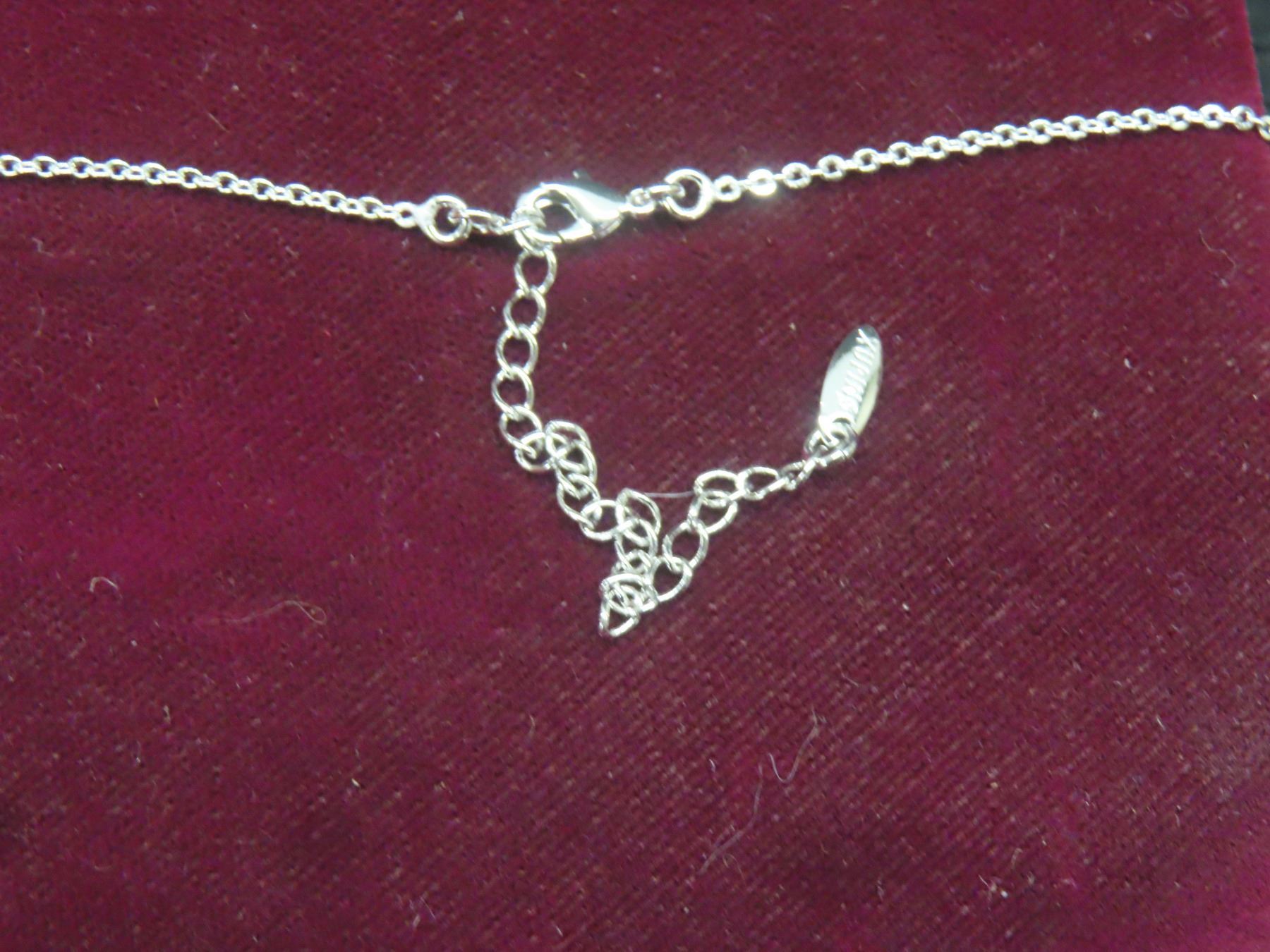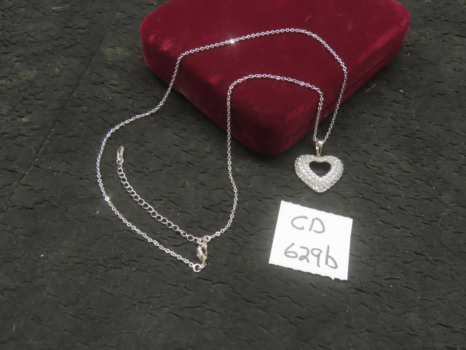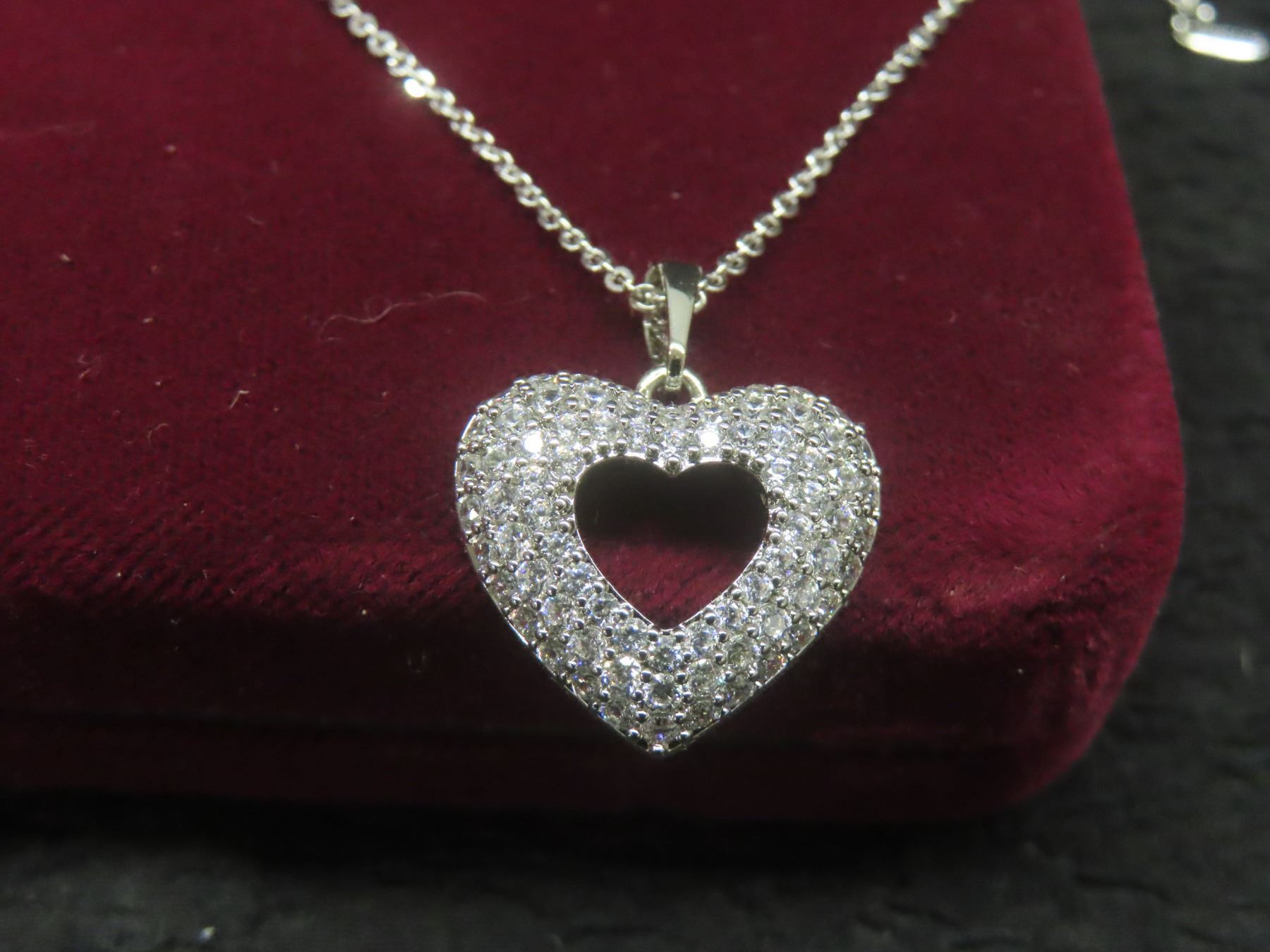 Lot 629B New Platinum-Plated 24.0mm Simulated Diamond Heart Cluster Necklace, Adjustable Chain 16"–1