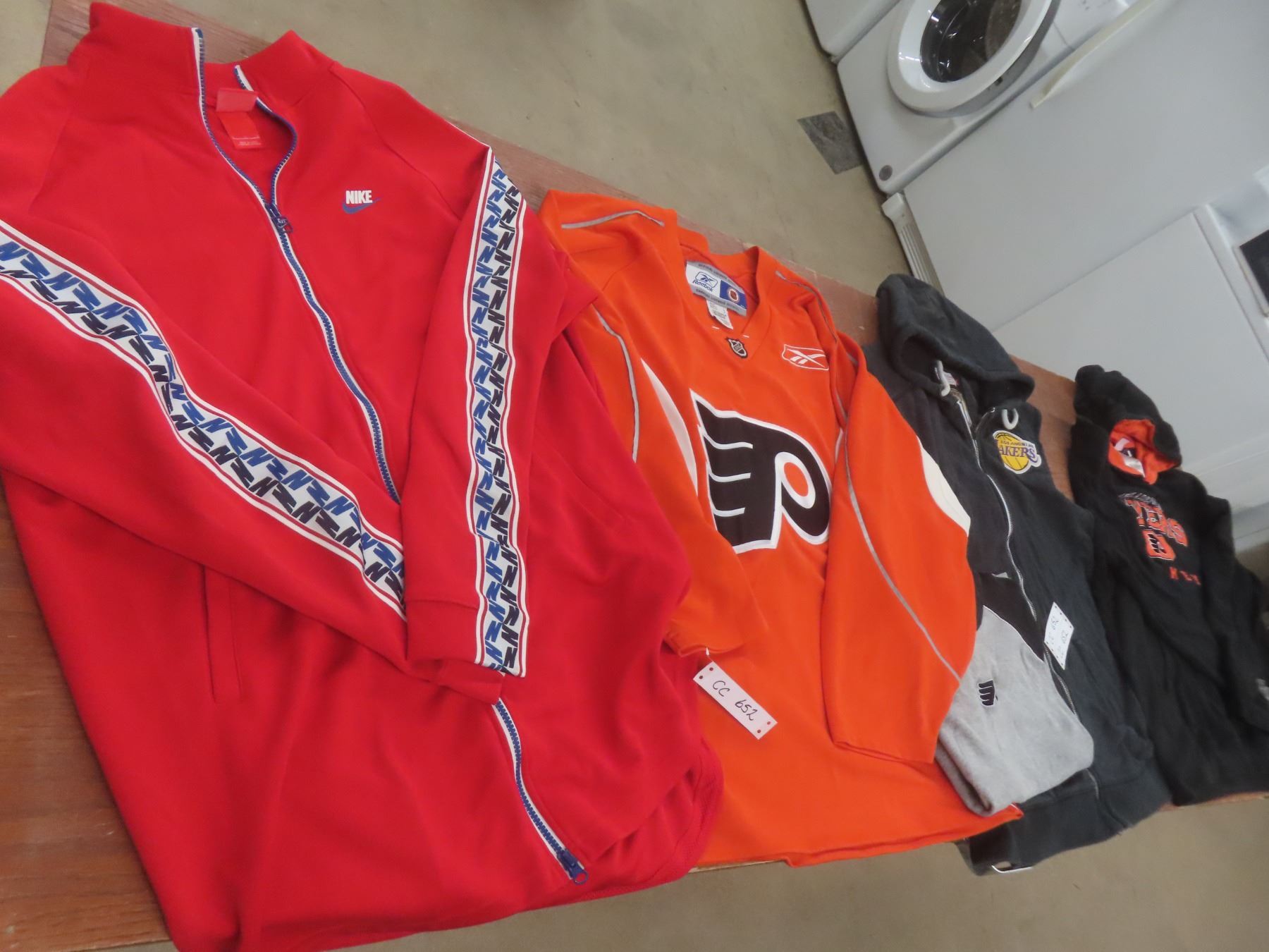 Lot 652 Philadelphia Flyers Jersey (Size Large), Nike Zip-Up Sweater (Size Large), Flyers Hoodie & Hat (Siz