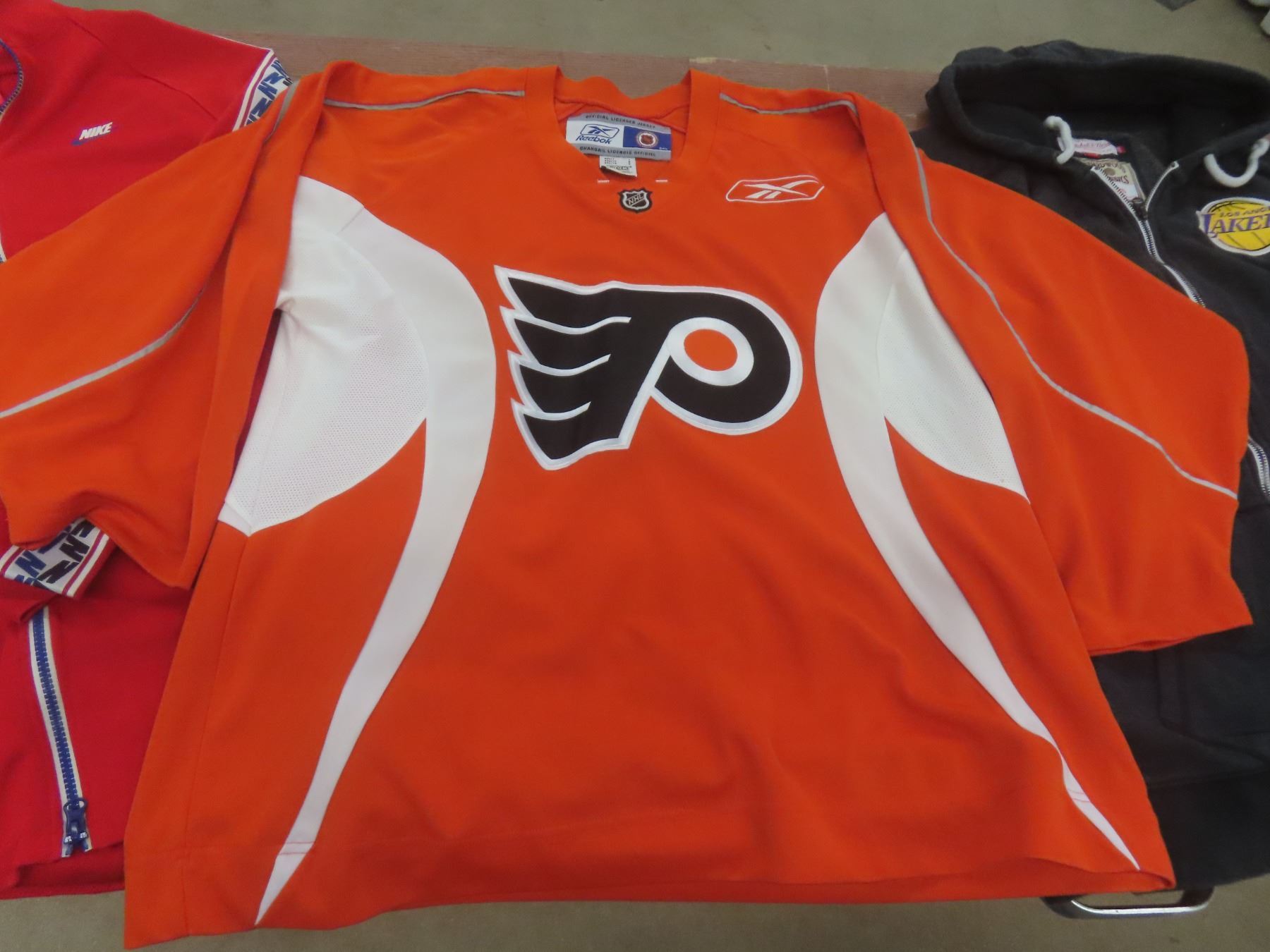 Philadelphia Flyers Jersey (Size Large), Nike Zip-Up Sweater (Size Large), Flyers Hoodie & Hat (Sizes 3XL & 2XL)