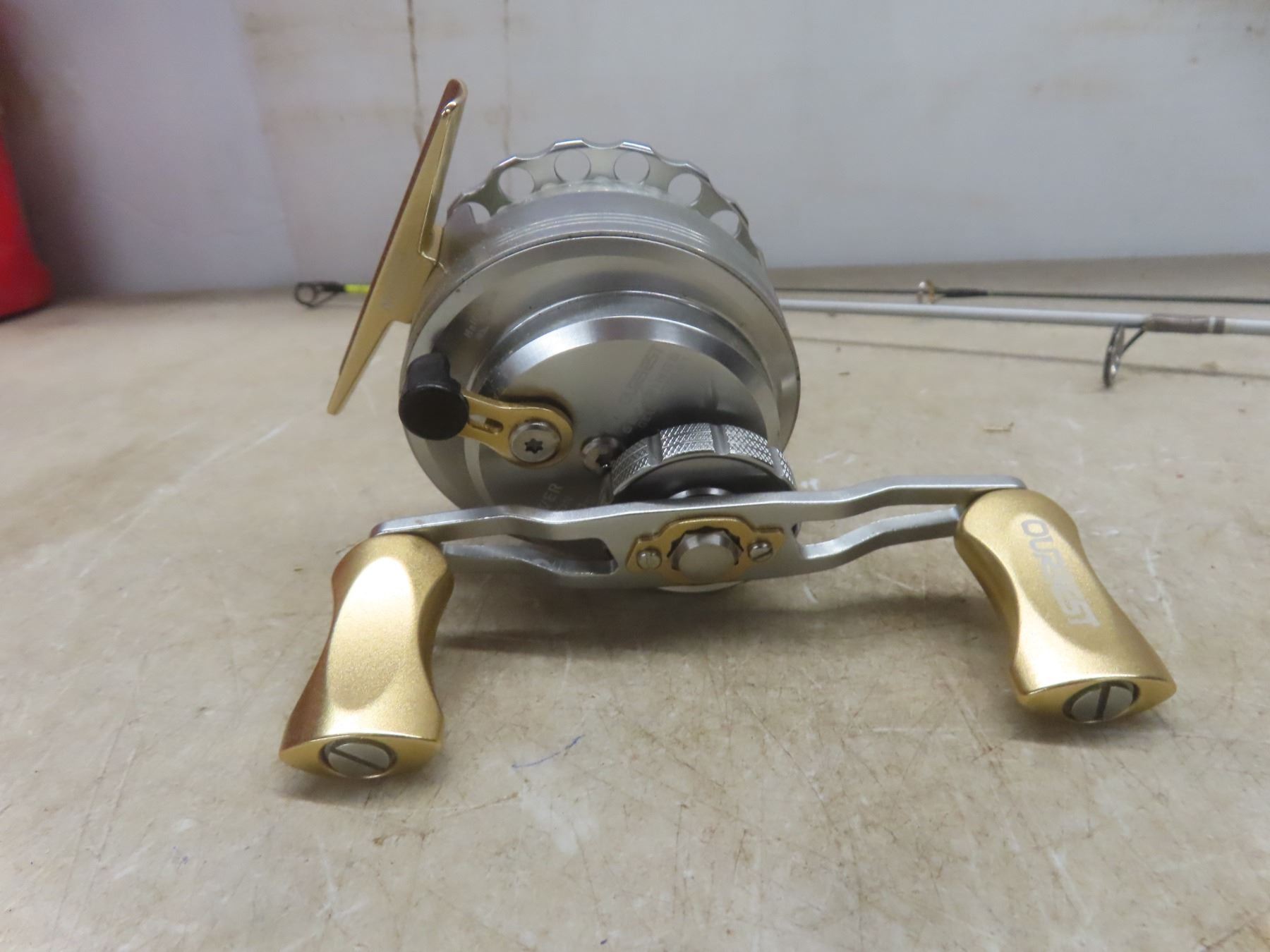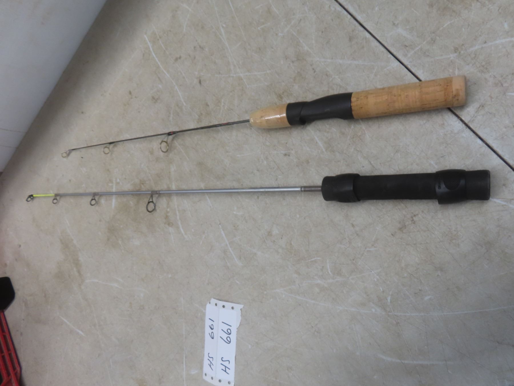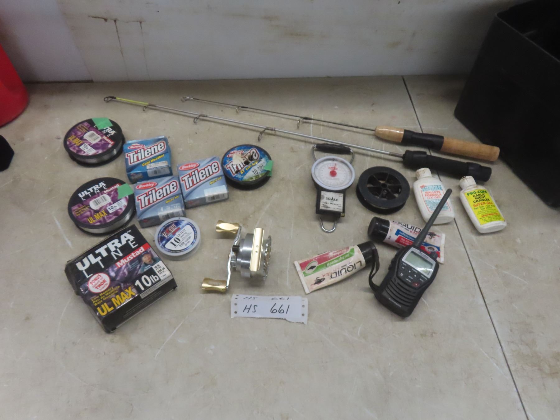 Lot 661 Fishing Gear: Reel, 2 Ice Fishing Rods, 8 Spools of Line, Scale & Tape Measure