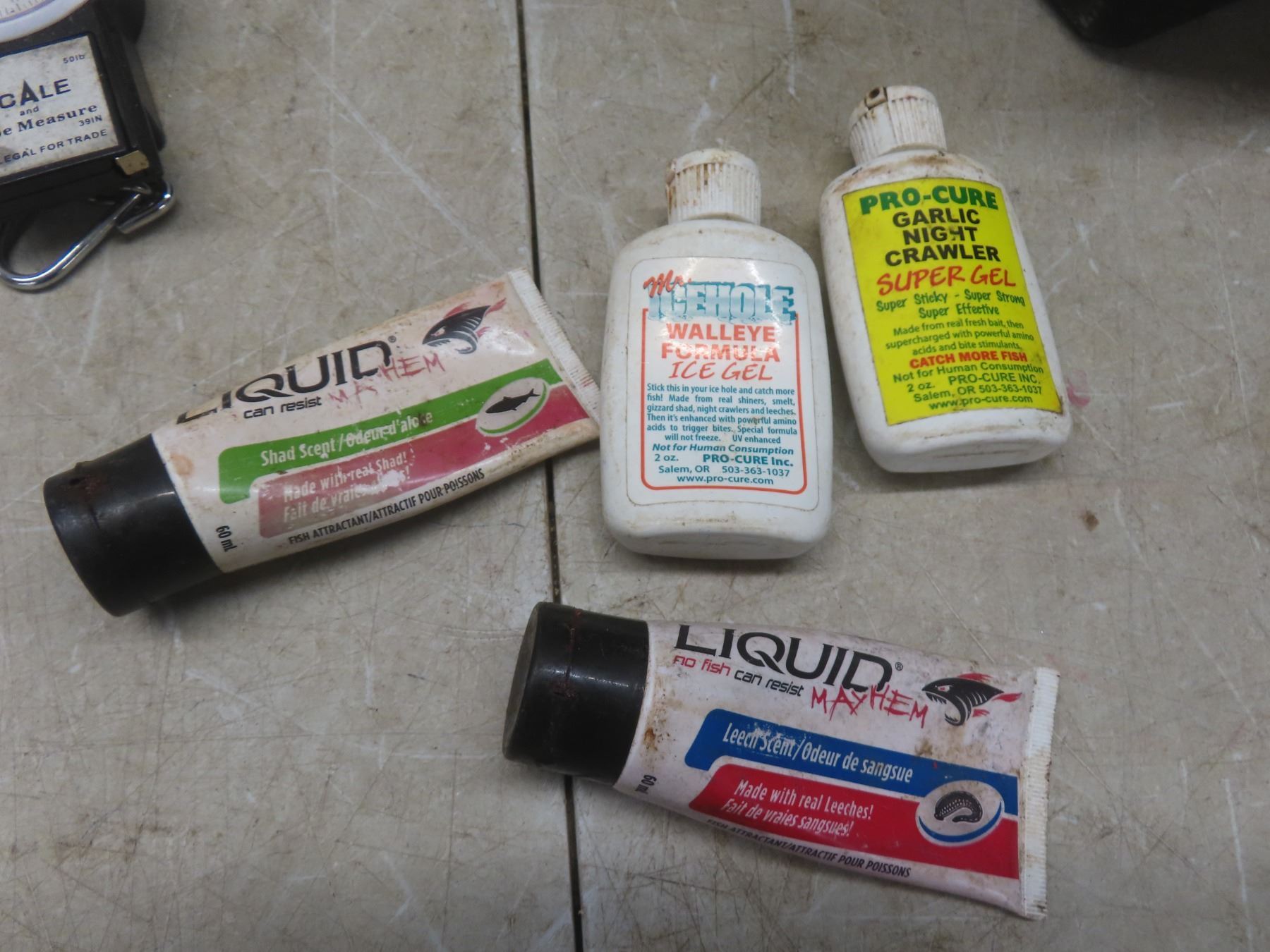 Fishing Gear: Reel, 2 Ice Fishing Rods, 8 Spools of Line, Scale & Tape Measure