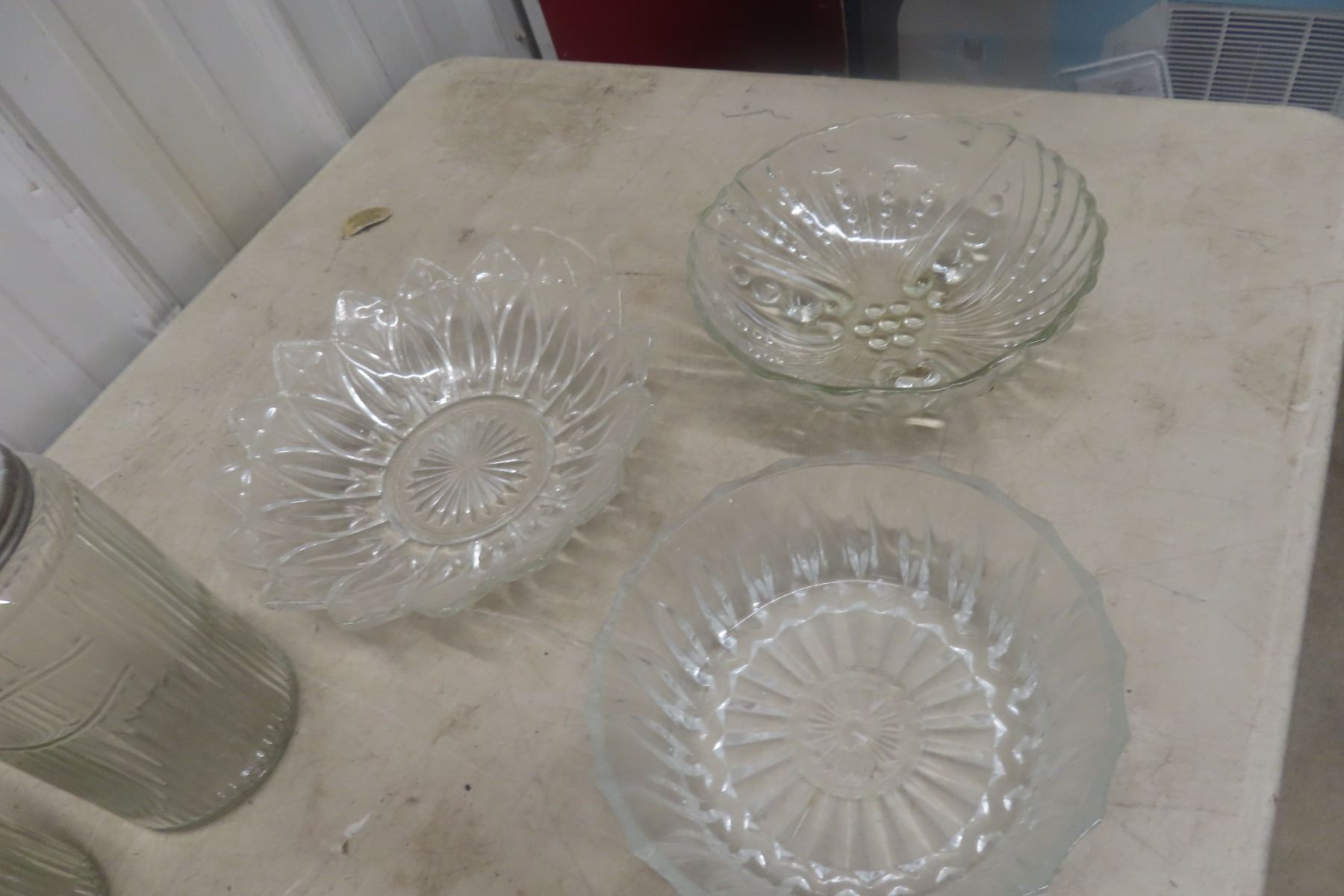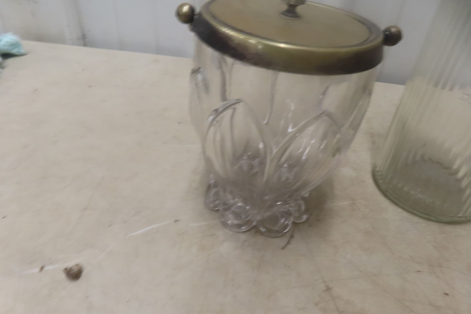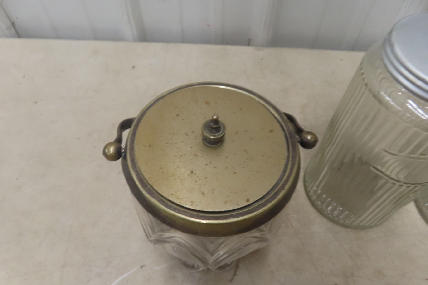 Lot 196 2 Housing Canister Biscuit Tins and 3 Cut Glass Bowls