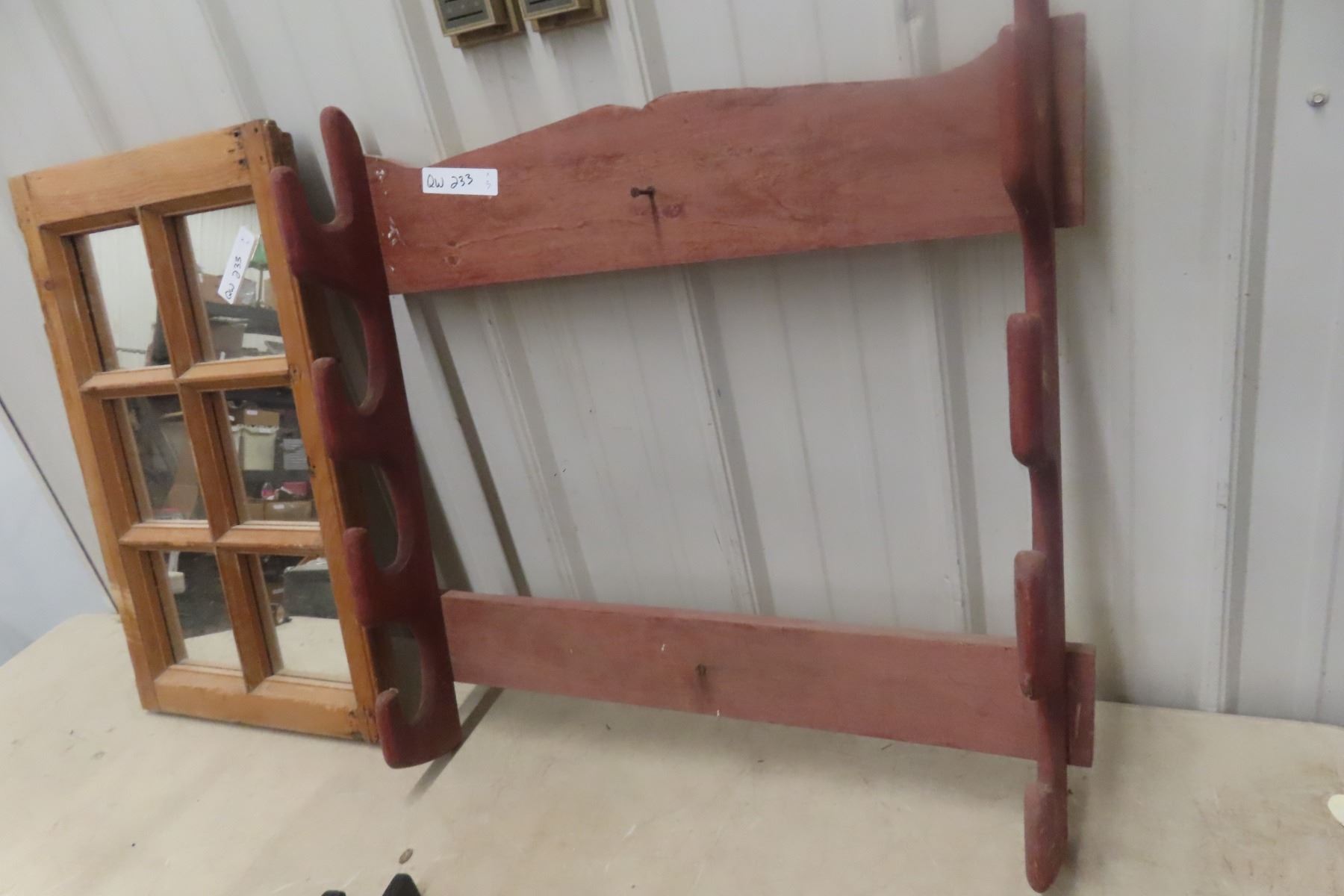 Lot 233 2 Open Gun Racks and 6-Pane Window Converted to Mirrors, 17" x 27 1/2"