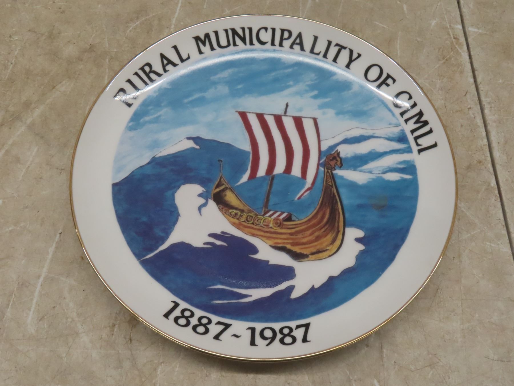 PM of Gimli 1887–1987 Collector Plate and Laser Cut Horse Design, 16" x 16"