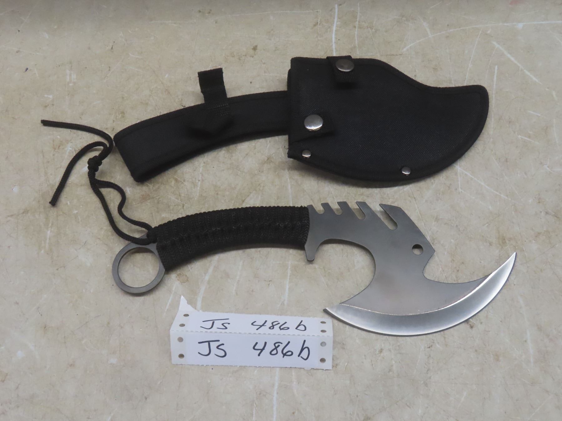 Lot 486B New Battle Axe With Sheath, Overall Length 11 1/2"