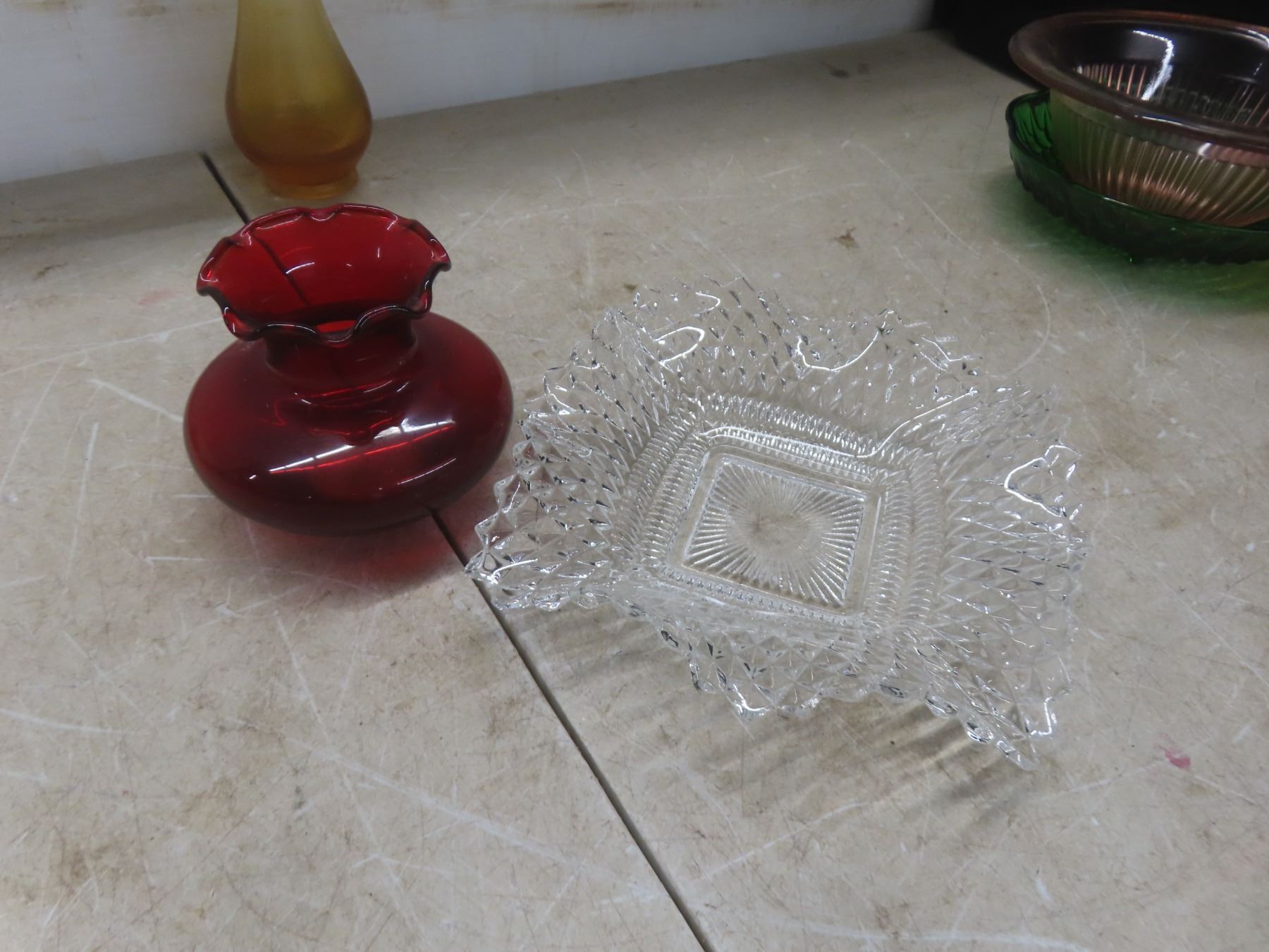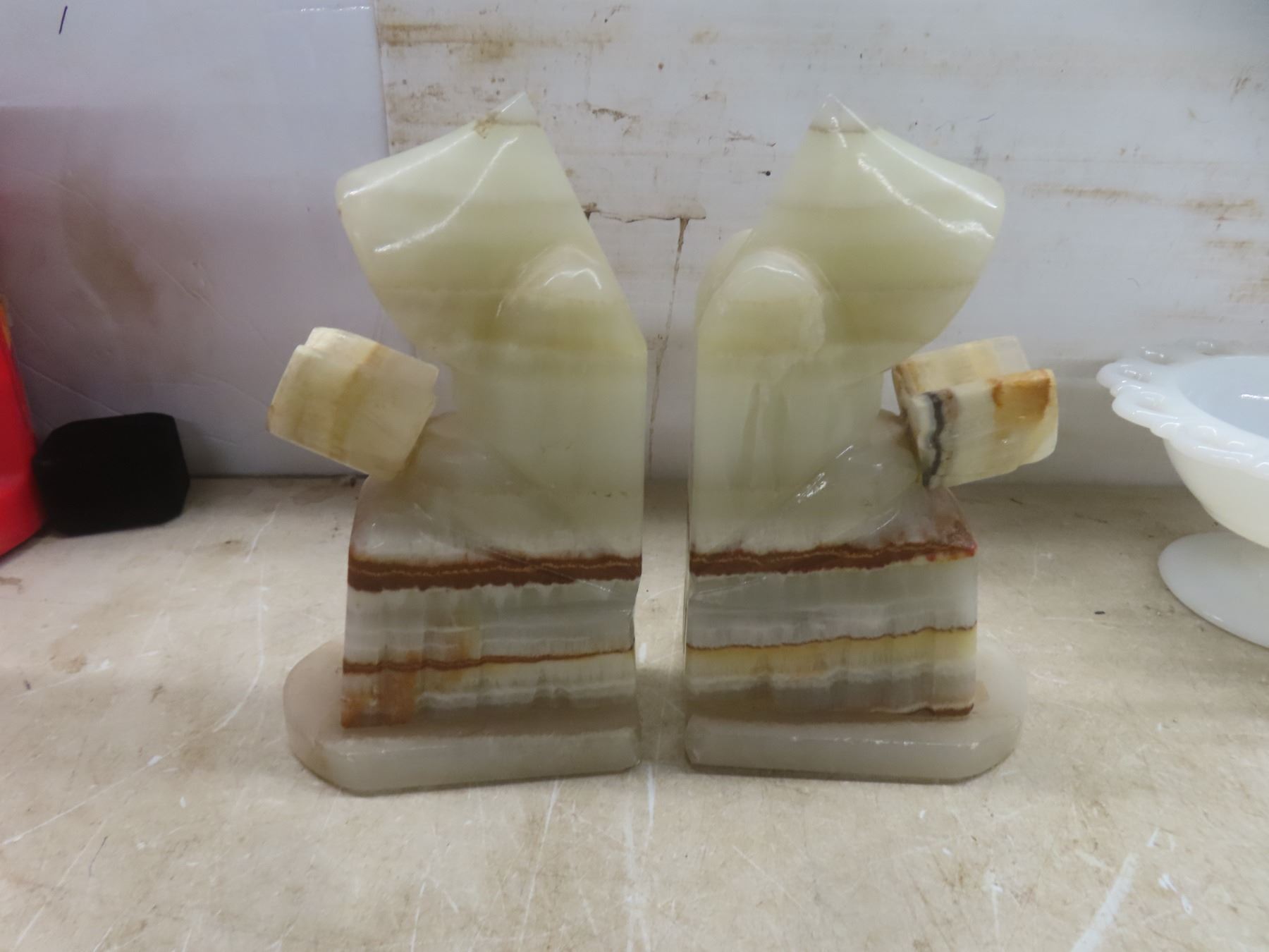 Onyx Bookends, Depression Glass Vase, Candy Dish, and More