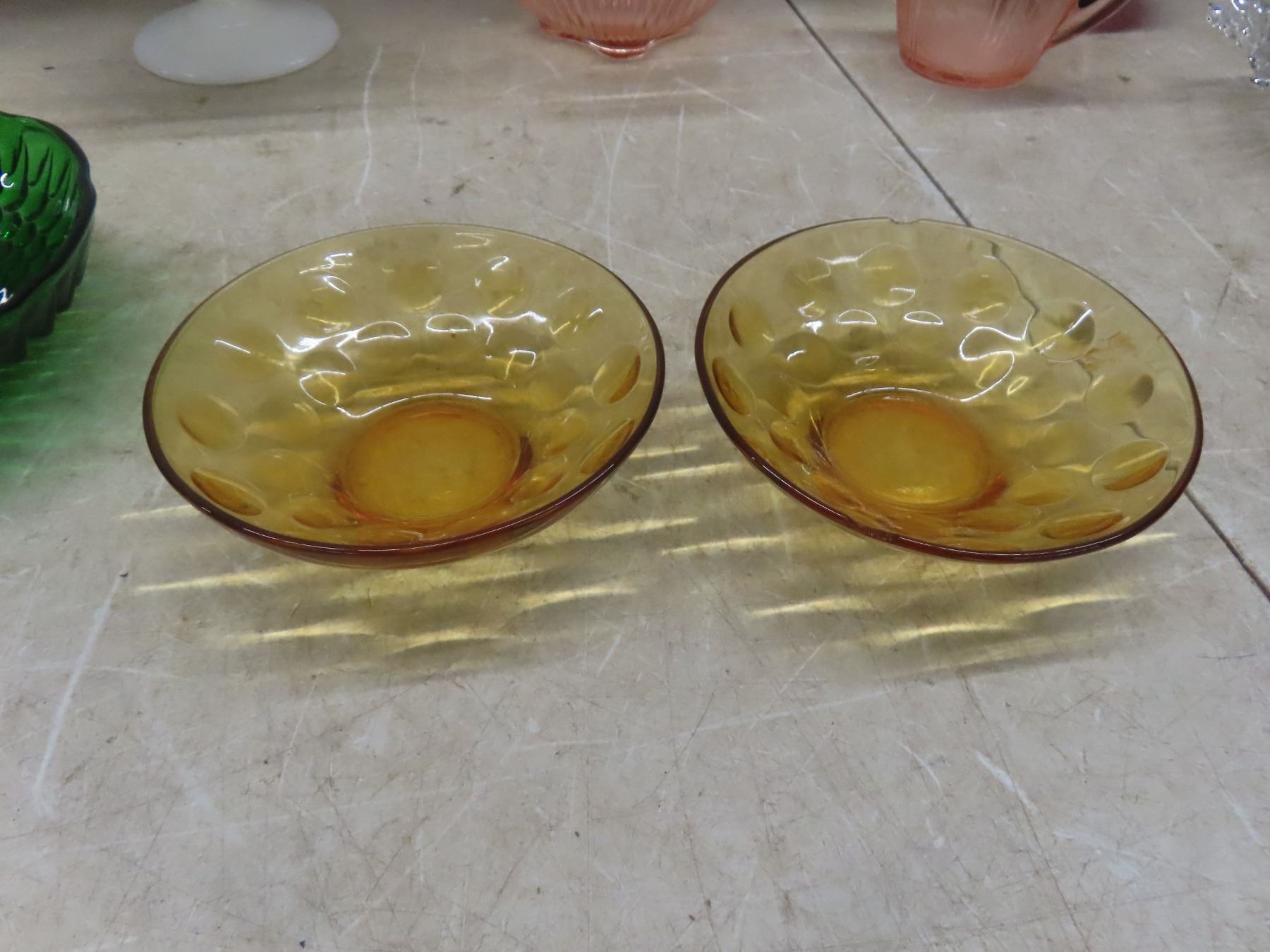 Lot 670 Onyx Bookends, Depression Glass Vase, Candy Dish, and More