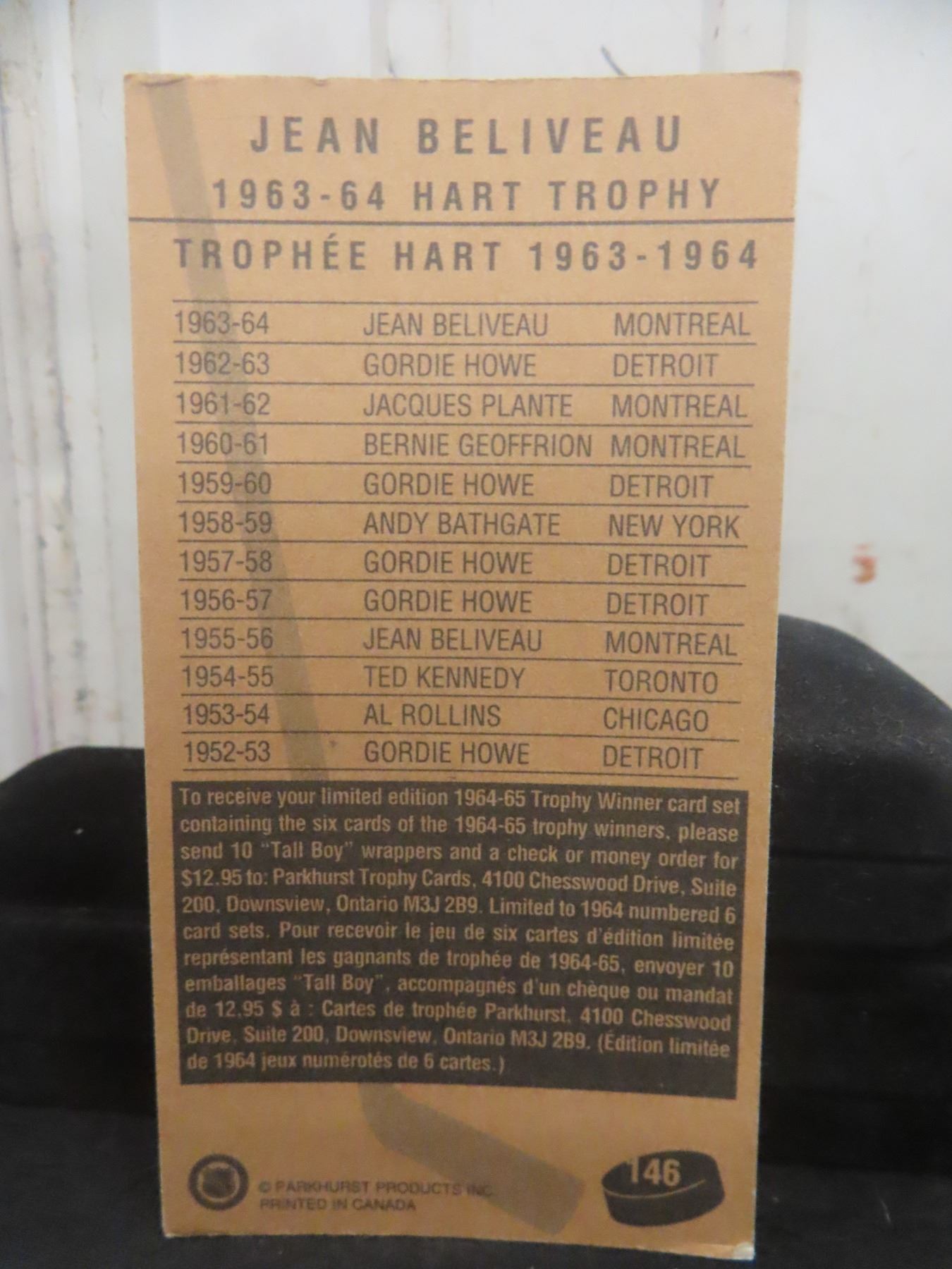 Lot 711b Signed Jean Beliveau Montreal Canadiens Parkhurst Hockey Card