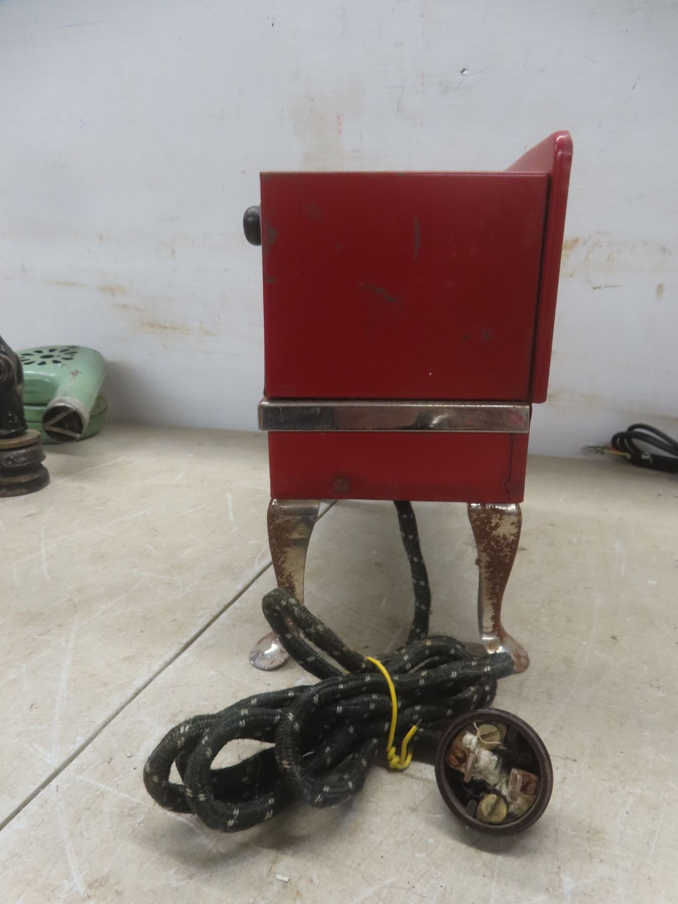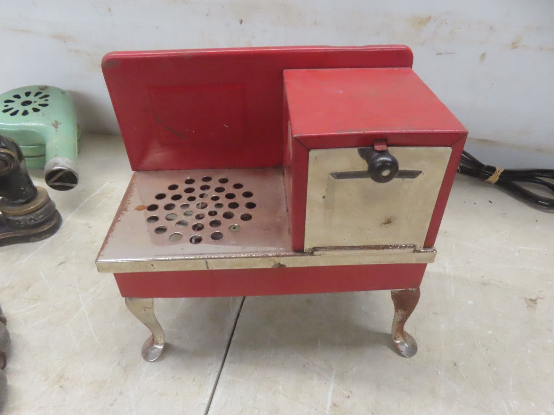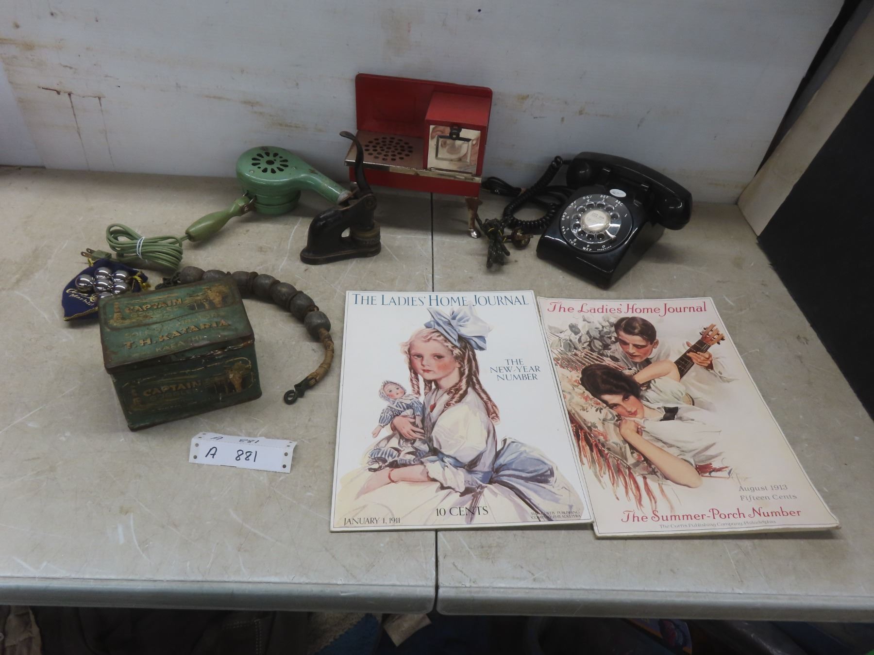 Lot 881 Vintage Blow Dryer, Rotary Phone, Child’s Electric Toy Stove, 2 Poster Cards, The Ladies[x=