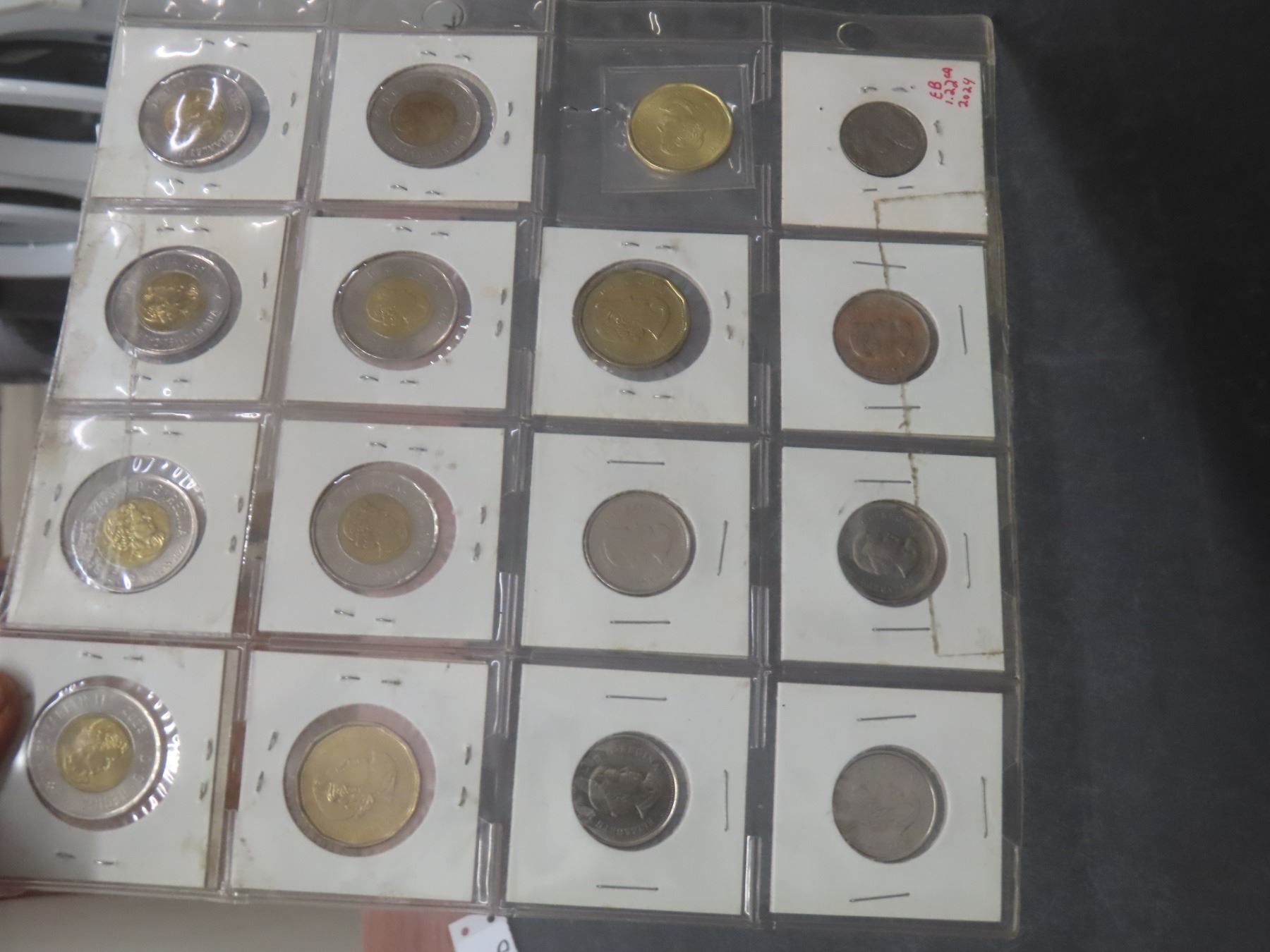16 Canadian Coins in Folder Sheets and Coin Flips